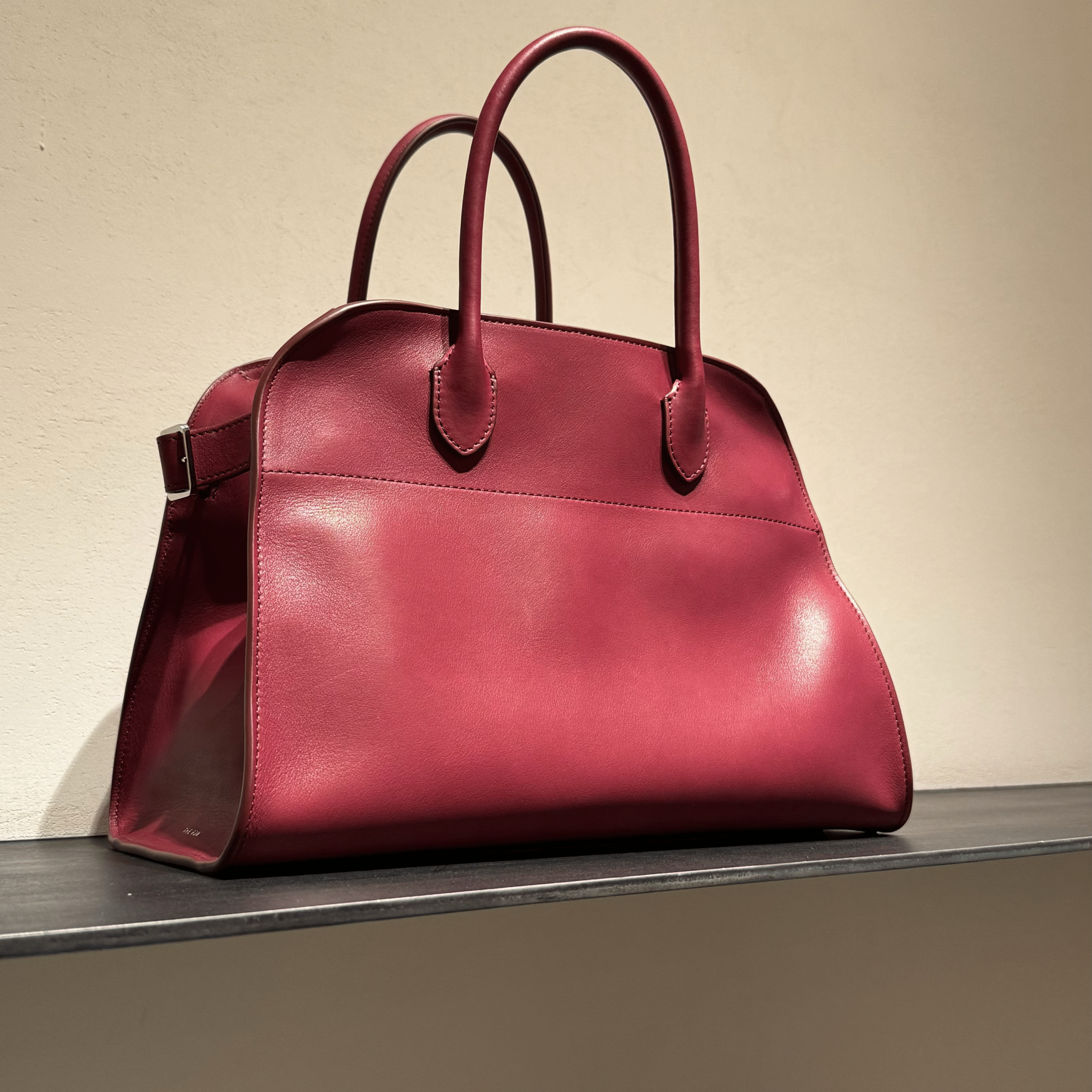 In the 2020s, no brand captured “anti-trend” energy quite like The Row. Founded by Mary-Kate and Ashley Olsen, the label built its reputation on discreet elegance — and the Margaux bag is its crown jewel.