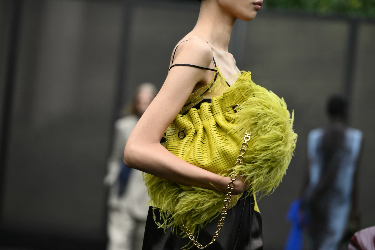 At Milan Fashion Week, Ferragamo unveiled co-ed looks infused with 1920s glamour—accented by chartreuse-coloured bags and shoes.